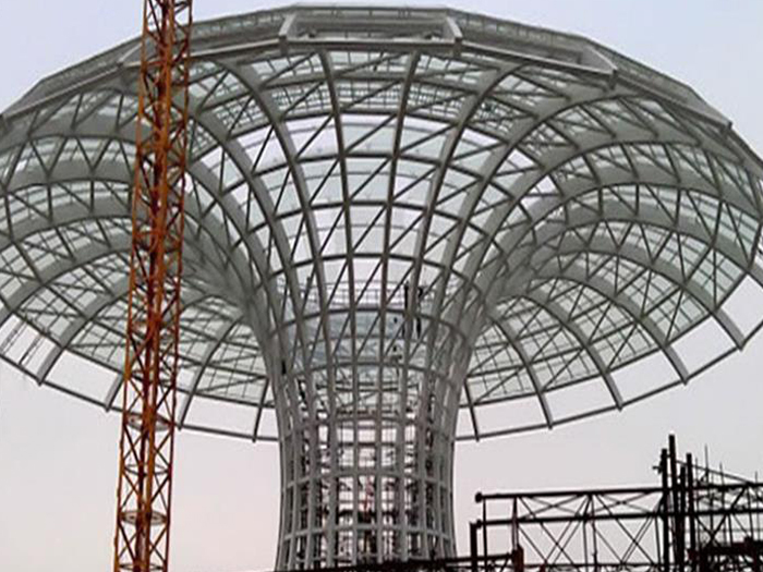 二、球形网架结构因其结构新颖,受力合理,自重轻、用钢量低等优点。如大型体育场馆球形大连螺栓球网架、公共场馆球形网架、电厂大连螺栓球网架、水泥工业球形网架、仓储物流球形网架、大连干煤棚工业球形网架、大连收费站大连加油站球形网架、展览中心、影剧院、商场、航站楼、候车厅、工厂大连车间、仓库、电视塔等球形螺栓球节点网架。国内球形网架结构主要分为:大连焊接球节点网架及螺栓球节点网架两种。螺栓球节点网架其构件工厂内加工量较大,现场安装便捷,适用于现场工期紧,大连施工条件、用电量受制约,网架形状复杂、大连杆件定位困难的异形结构。螺栓球节点球形网架系统基本由大连杆件、螺栓球、支撑支座等组成。按照节点形式可分为交叉大连桁架体系、四角锥体系、三角锥体系等。支撑方式多为固定支座支撑。对于大面积、大跨度及有特殊受力或伸缩要求的网架结构可采用橡胶支座、滑移支座、球铰支座等支撑形式,以满足结构自身的受力稳定、均衡,便于内力释放等设计要求。